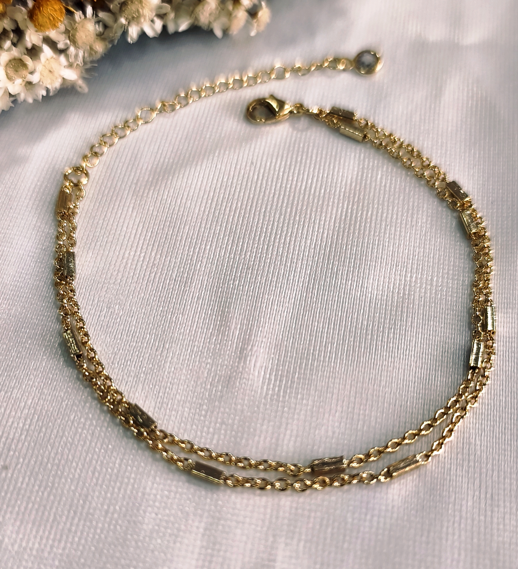 CPV0358 Pulseira Dupla Trabalhada c/ Canutilho Dourado Yellow Semijóias c/ Banho de Ouro 18k