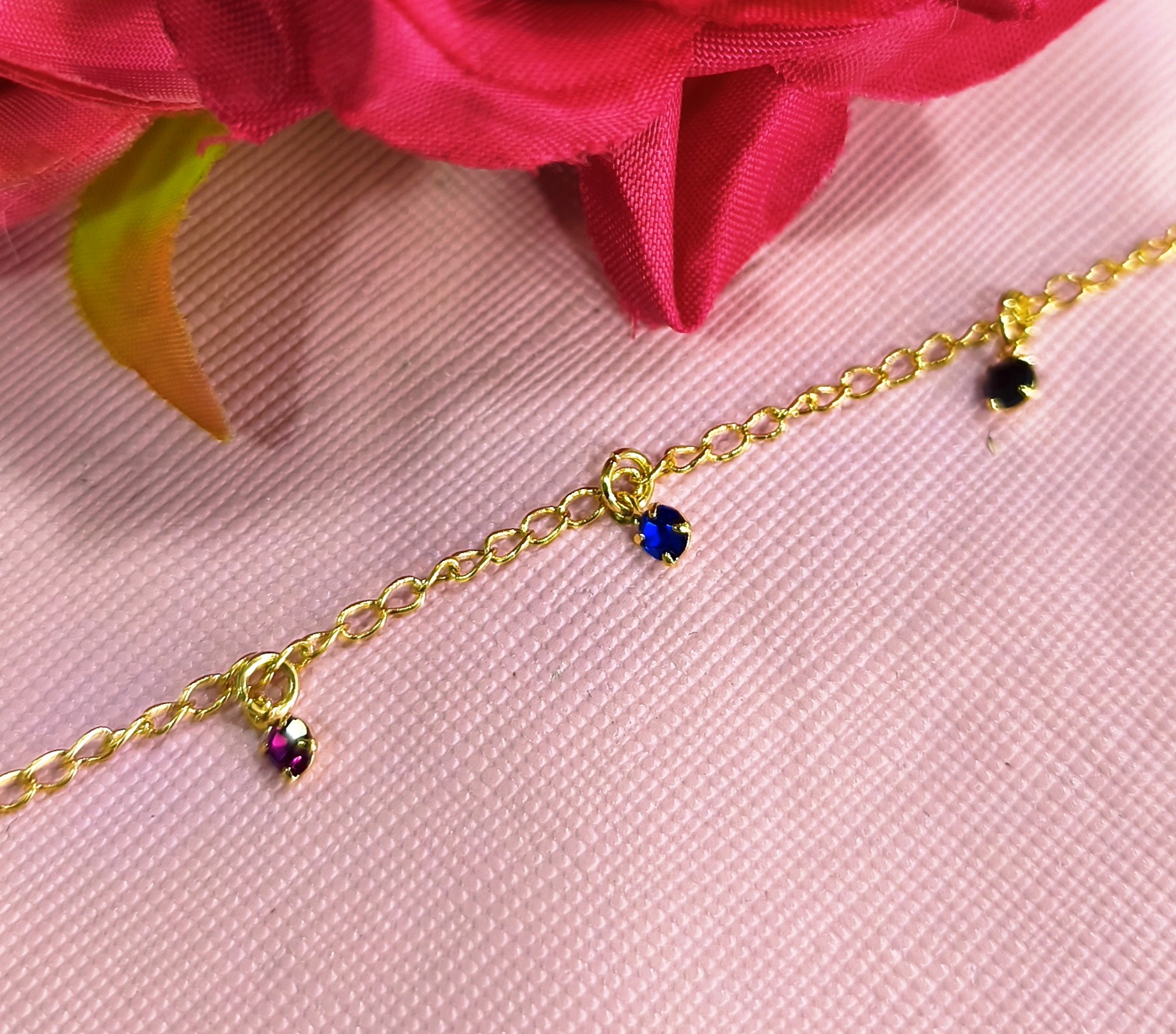 CPV0364 Pulseira Infantil (14 p/17cm) c/ Pedirnhas Penduradas Yellow Semijóias c/ Banho de Ouro 18k