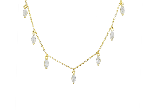 GB 0307 Gargantilha Choker Navetes Zircõnia Pendurada 35 P/ 40CM BRUNA Semijoias Com Banho De Ouro 18K Antialérgico e Níquel FREE.