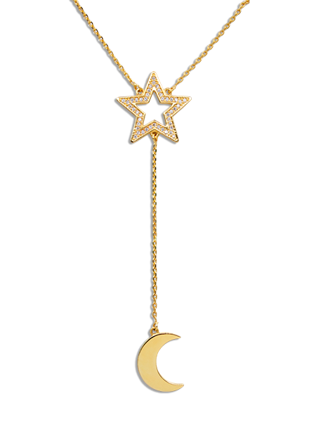 GB 0366 Gargantilha 40 P/ 45 CM Gravata Estrela Cravejada Com Lua Pendurada BRUNA Semijoias Com Banho De Ouro 18K Antialérgico e Níquel FREE.