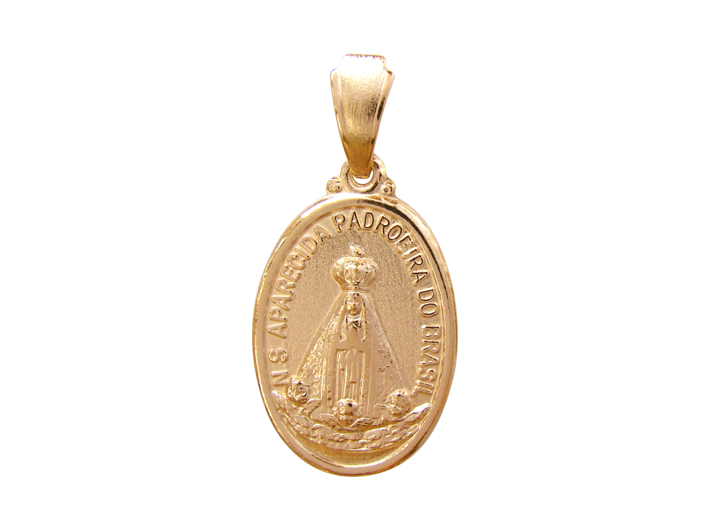 MB 0852 Medalha Oval 3cm Nossa Senhora Aparecida Padroeira do Brasil BRUNA Semijoias Com Banho de Ouro 18K Antialergico e Niquel FREE