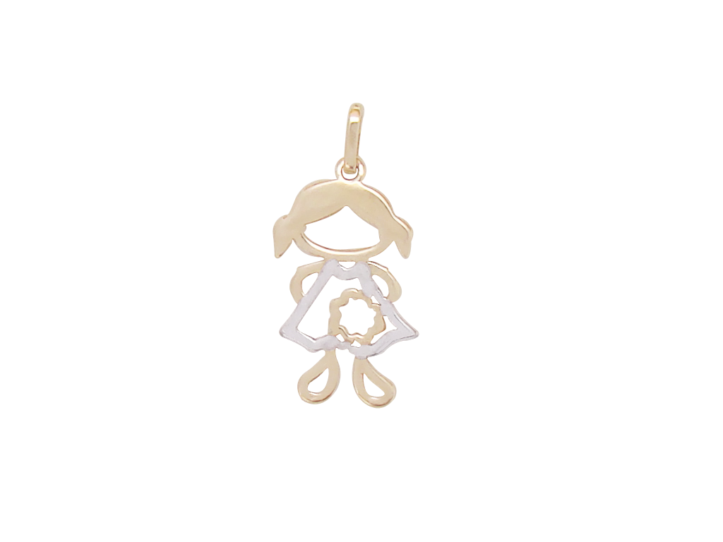 MB 1095 Medalha Menina com Flor 2CM BRUNA Semijoias com Banho de Ouro 18K Antialérgico e Níquel FREE