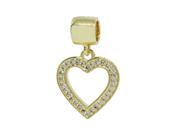 MB 1242 Medalha Berloque Coração Vazado Micro Zirconias BRUNA Semijoias Com Banho De Ouro 18K Antialérgico e Níquel FREE.